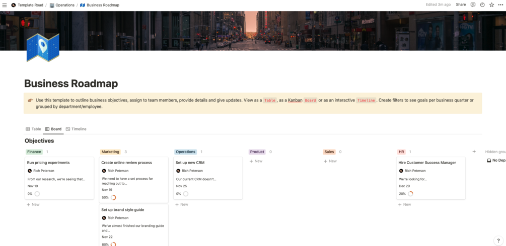 Use this template to create a roadmap for your business planning. See more details on the page for the Notion Business Roadmap Template.