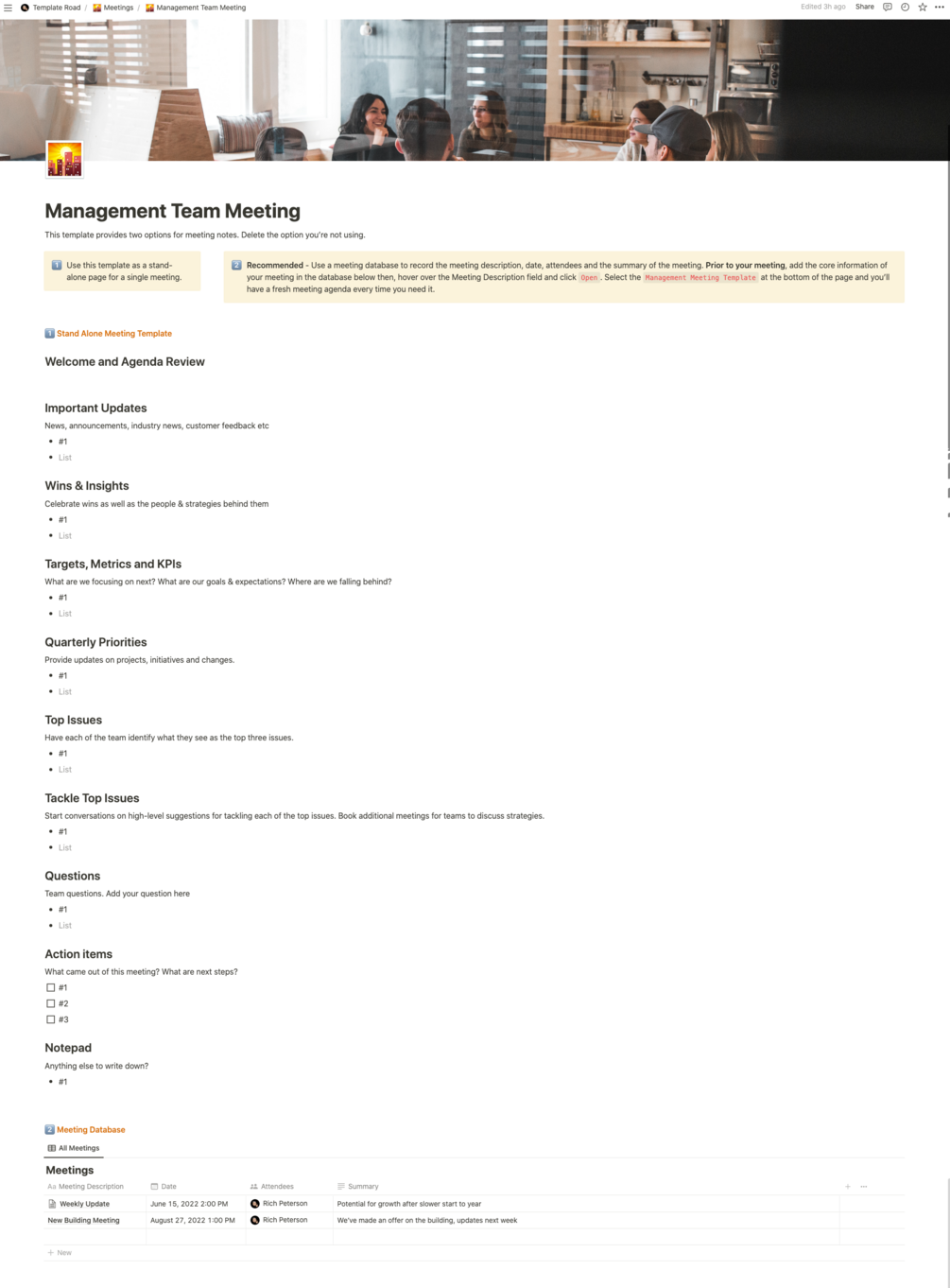 Notion - Management Team Meeting Template