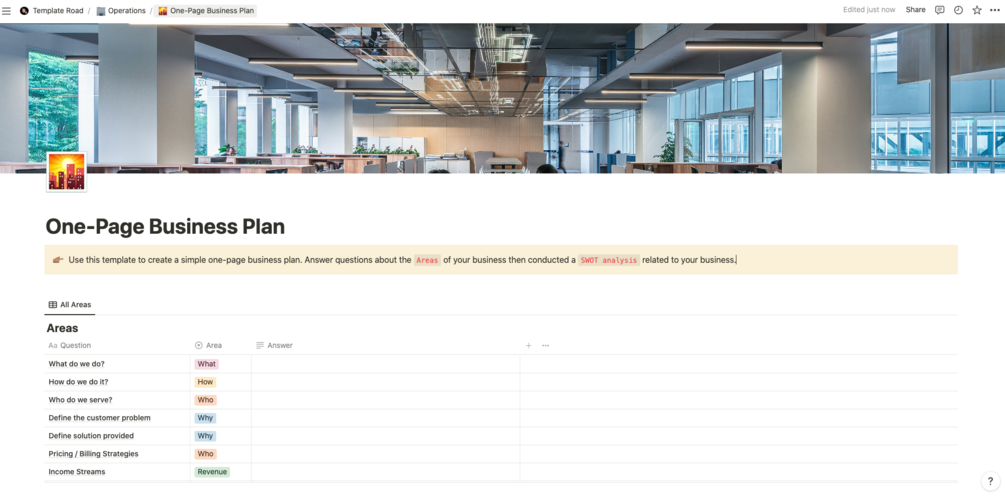 Notion - One-Page Business Plan Template