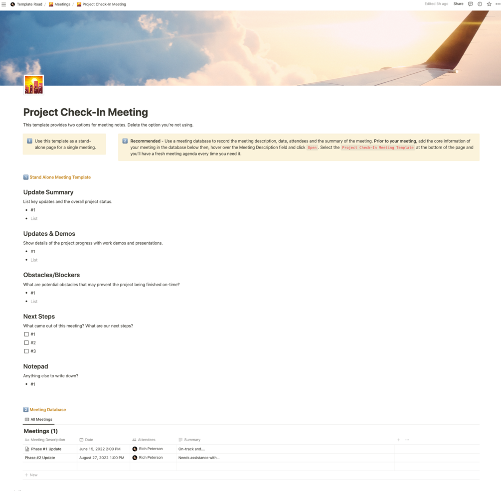 Notion - Project Check-In Meeting Template