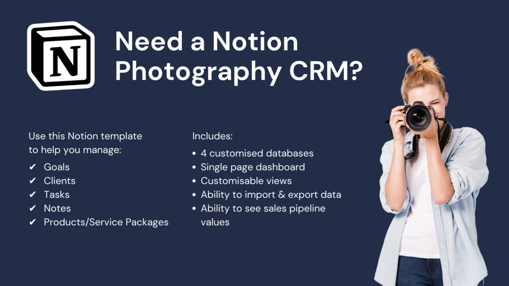 If you’re looking to build a photography CRM in Notion for your business, you’re in the right spot. By using Notion to build a lightweight CRM, you can create the custom business CRM that you need in your favourite tool.