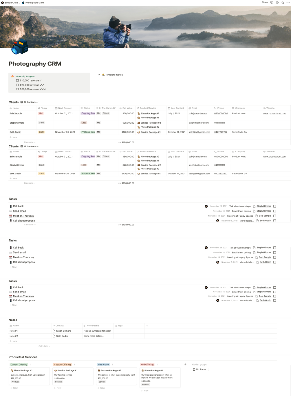 Build a Photography CRM using Notion